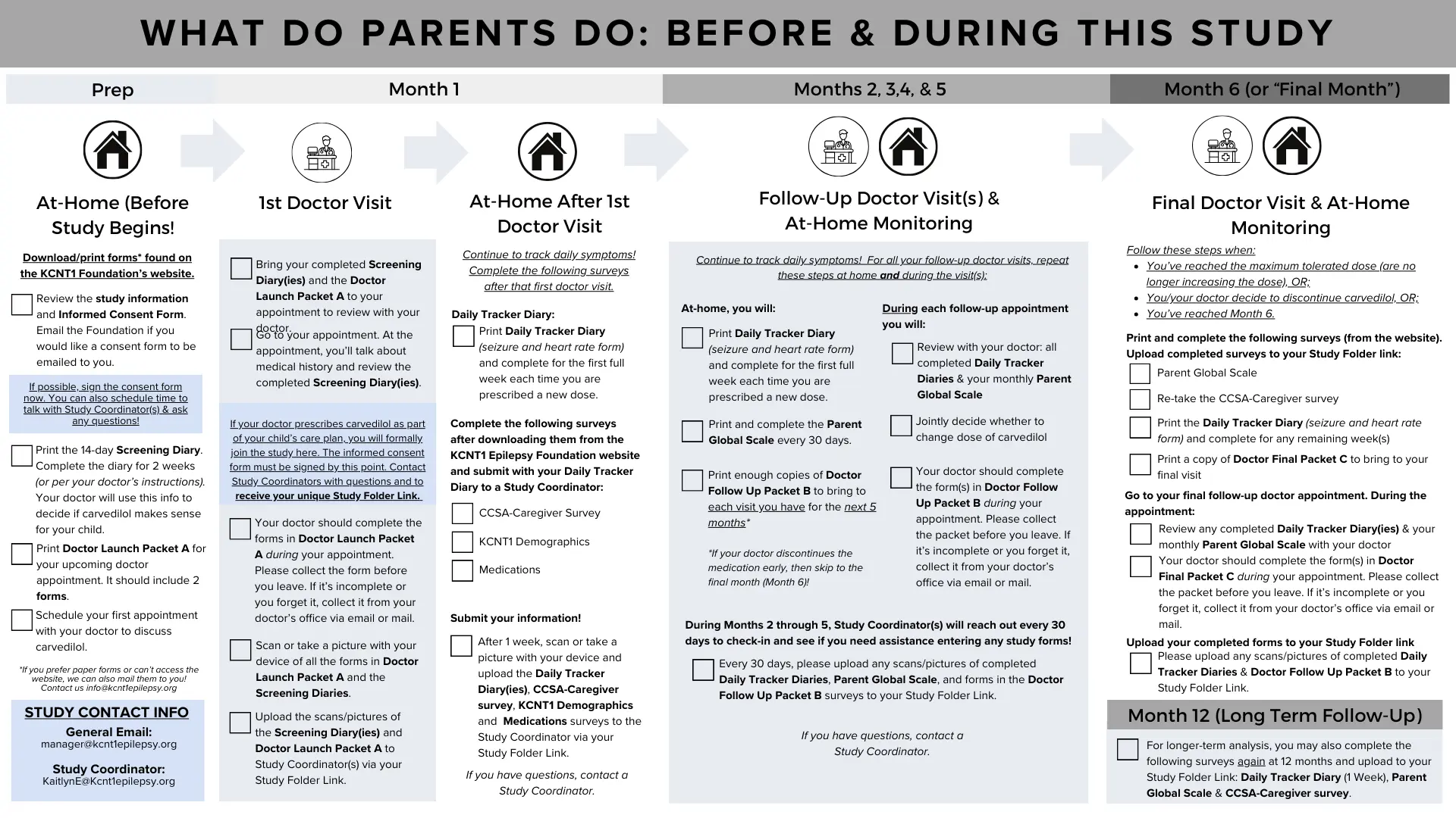 The study forms can be downloaded below, or they can be mailed to you. If your doctor prescribes carvedilol and you wish to participate in the study, email the KCNT1 Epilepsy Foundation and they will provide a link to an online storage drive for you to upload your completed forms throughout the study.
